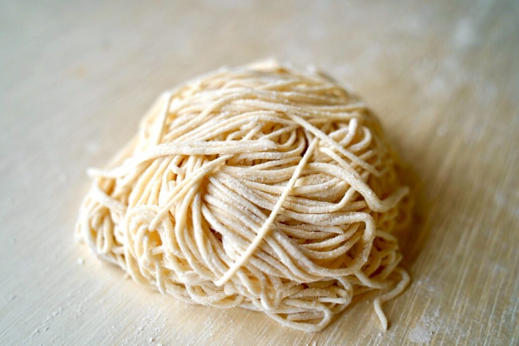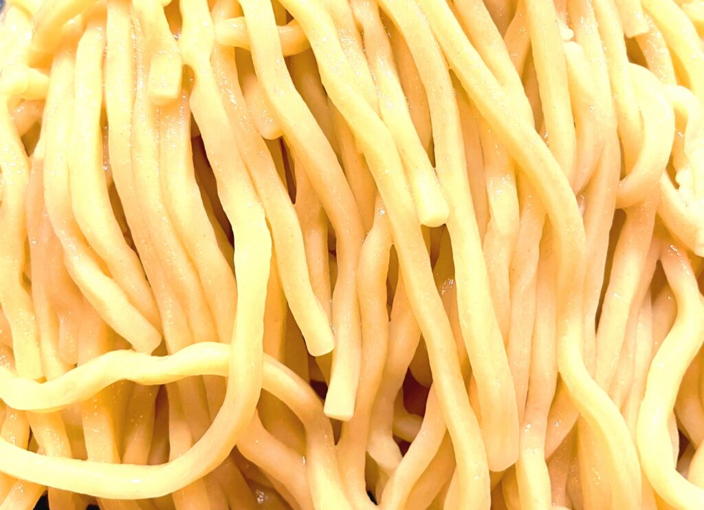 より本物に近づくように、お客様に極太のごわごわした麺を作って頂きます。