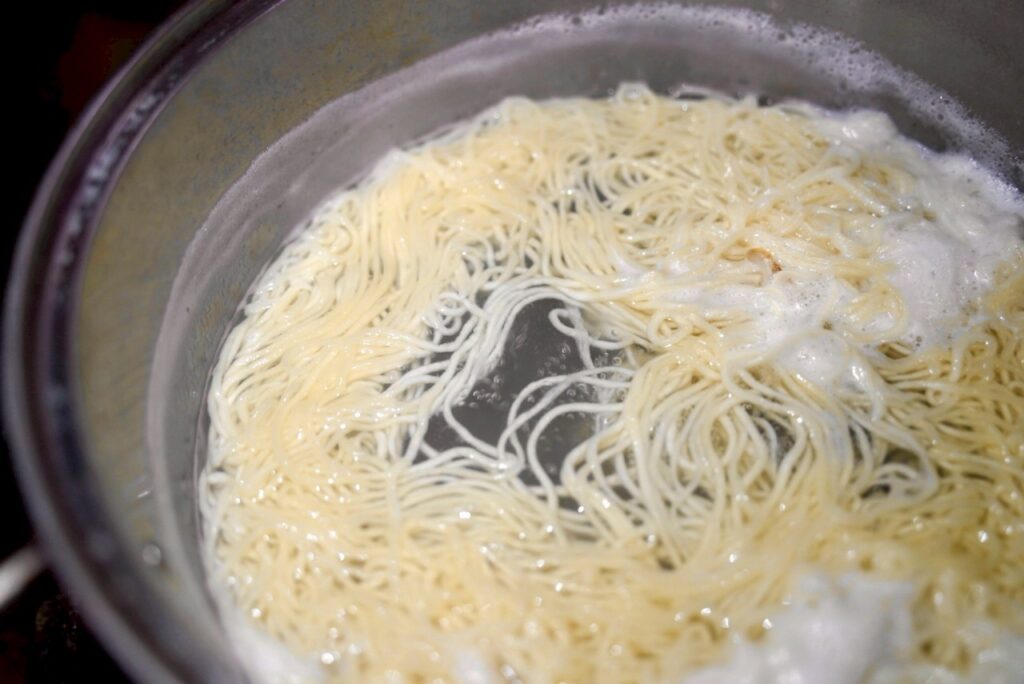 もやしとキャベツをゆでたものをラーメンの上にのせます。